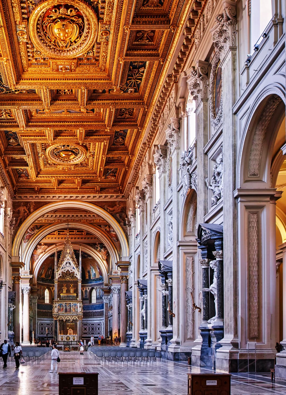 The basilica also houses the precious chapel of the Popes, known as the Sancta Sanctorum, which houses relics considered important by the Catholic Church. To get to the chapel, one must walk up the Scala Santa (Holy Stairs), consisting of 28 marble steps.