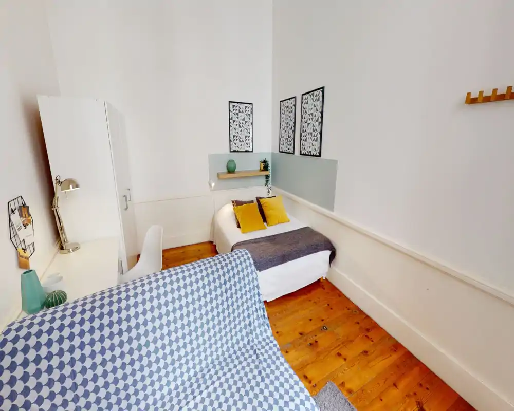 The building hosts a welcoming shared environment in a classic Lyon neighbourhood, offering practical living with modern comforts.