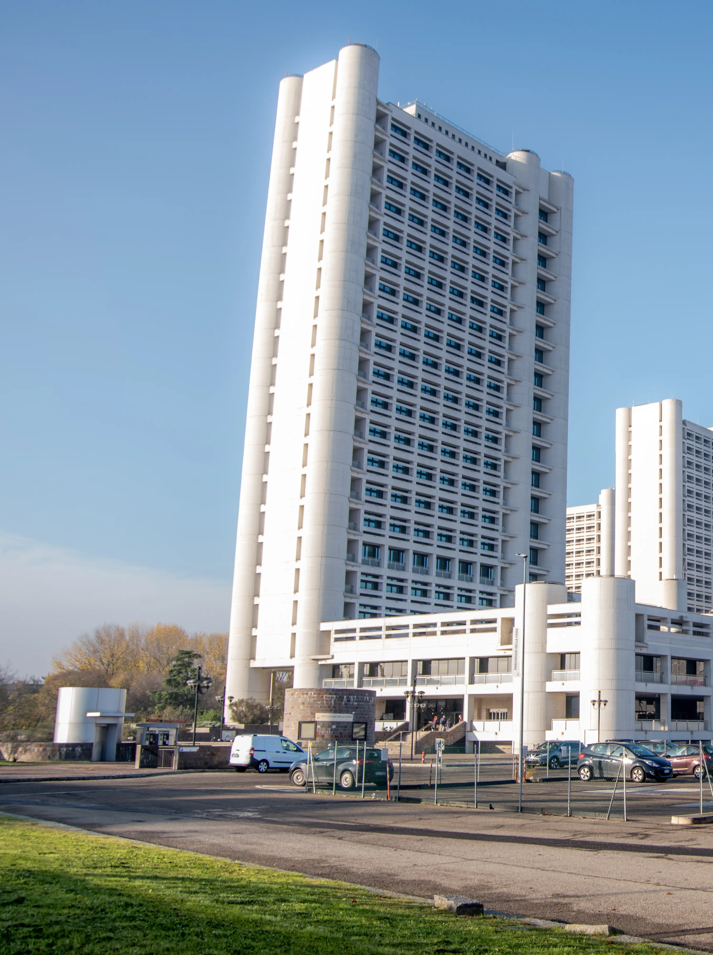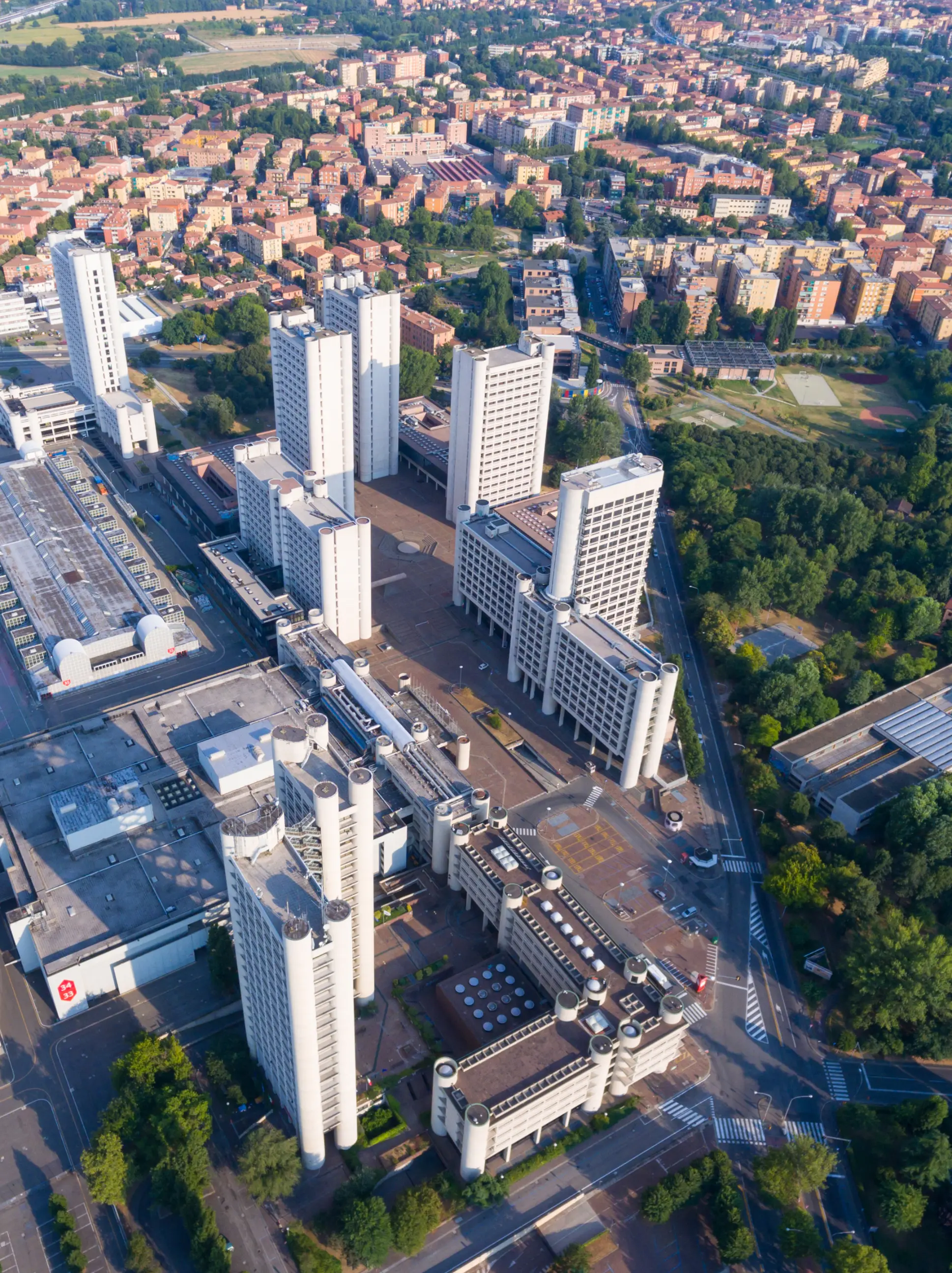 El Distrito de la Fiera está formado por varios edificios construidos a lo largo del tiempo, pero los primeros y principales son las torres de Kenzō Tange, un conocido arquitecto japonés. Las torres también albergan organismos administrativos como la Región de Emilia-Romaña.
