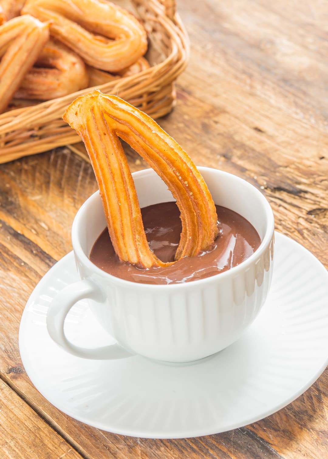 A primera hora de la mañana, por ejemplo, puedes dirigirte a la calle Mayor y disfrutar de un desayuno con churros, uno de los dulces típicos españoles. O puedes decidir tomar un desayuno salado, quizás con un sabroso 'bocadillo', un sándwich de queso y jamón.