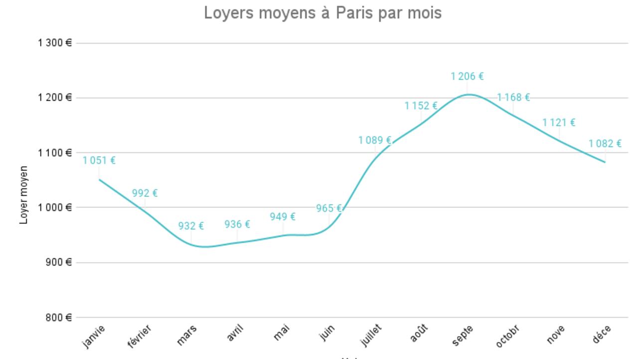 En revanche, les mois où les loyers parisiens en colocation sont les moins élevés sont d’avril à fin juin où la moyenne des loyers peut descendre en dessous de 900 €, ce qui s’explique par une faible demande. Le mois d’avril étant le plus creux, c’est le moment de l’année où il est le plus simple de se loger à un prix le plus compétitif. Voici un tableau récapitulatif des mois où vous pourrez louer votre colocation avec les budgets des moins élevés aux plus élevés en fonction des mois !