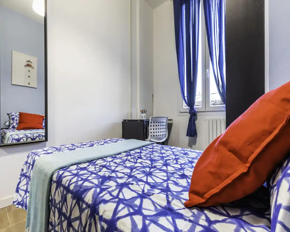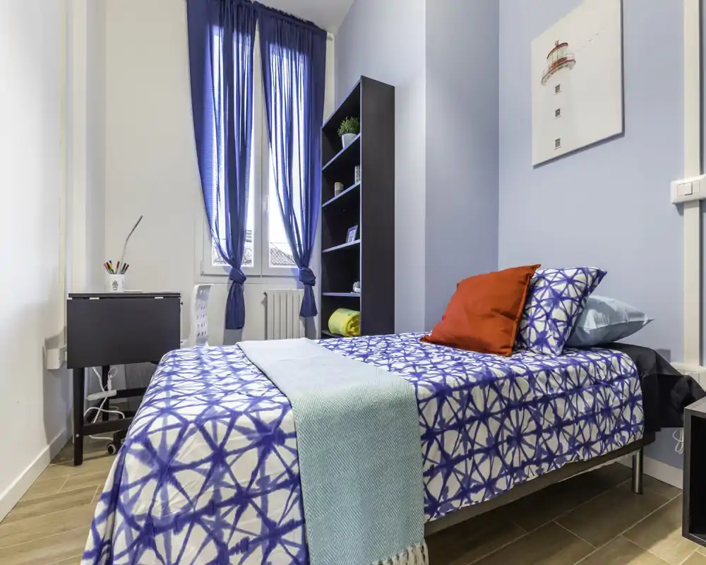 Questa stanza misura 10,35 metri quadrati ed è parte di un ampio appartamento con 8 stanze e 3 bagni. Goditi servizi come lavastoviglie, lavatrice, televisione, WiFi, forno e riscaldamento.