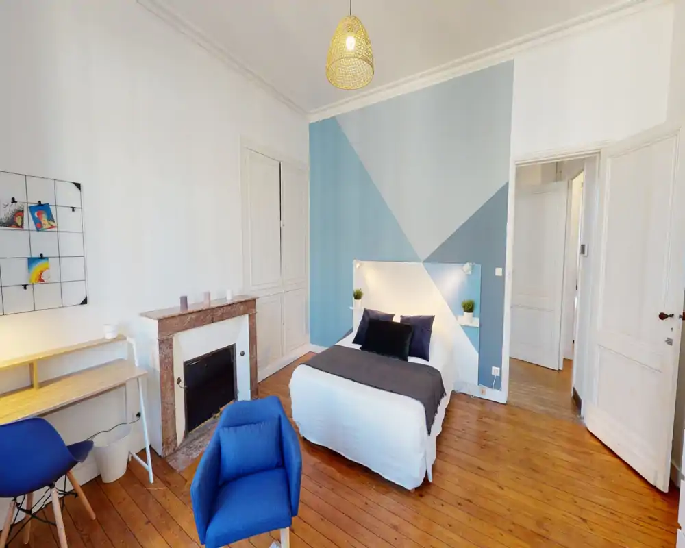 Situata in St Seurin - Fondaudège, questa stanza luminosa offre spazio generoso e comoda vicinanza ai servizi della città. Perfetta per chi cerca un ambiente rilassato con buoni collegamenti.