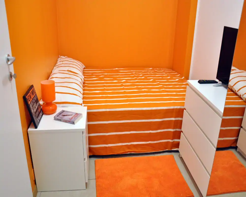 Si tratta di una Stanza di circa 9,46 m² in un appartamento con servizi condivisi: Wi‑Fi, riscaldamento e cucina attrezzata con forno e lavastoviglie. L'appartamento dispone di due bagni e ospita sei posti letto distribuiti in sei stanze.